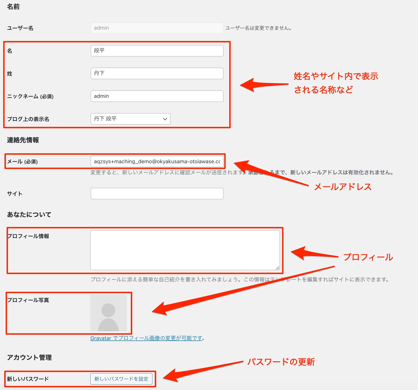 運営者のアカウント情報を管理する機能です。運営者のメールアドレスやパスワード、表示名などのプロフィール情報を設定できます。